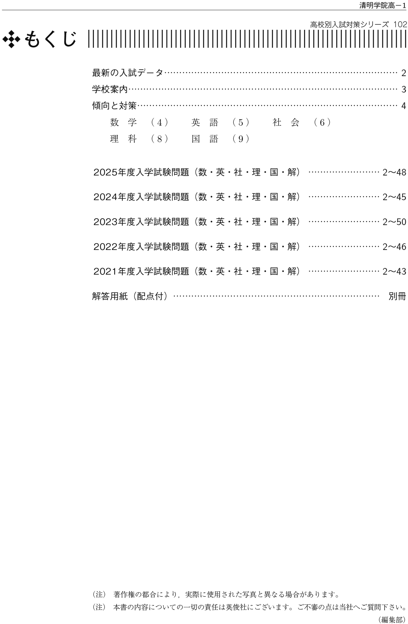 最新5か年分の入試問題を収録(2021~2025年)①くわしくていねいな解説
