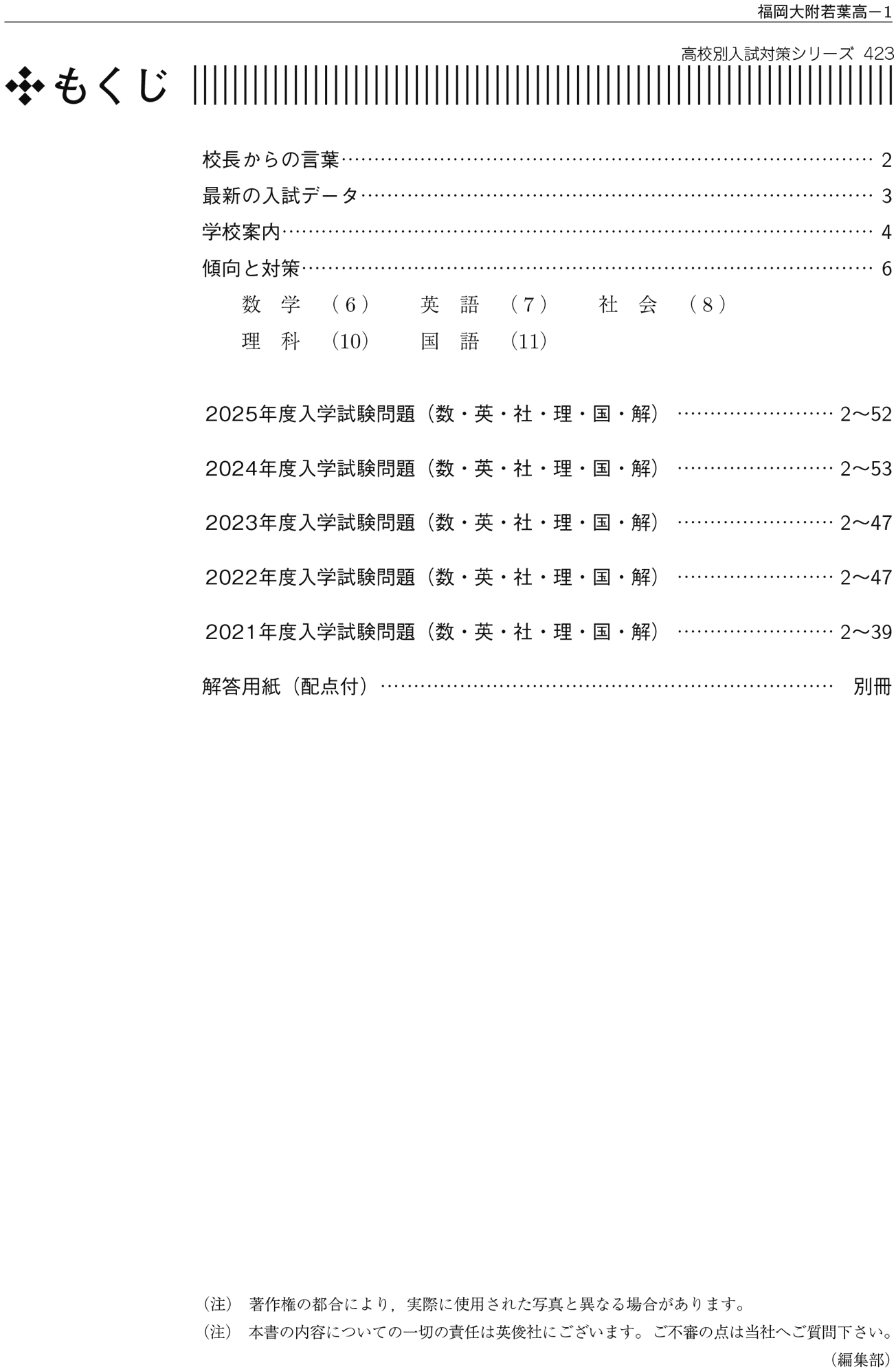 福岡大学附属若葉高等学校 (2026年度受験用)